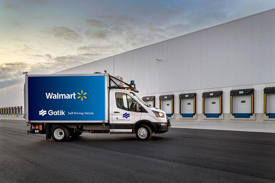 Idling there were three Ford delivery vans outfitted with self-driving technology developed by a Gatik a Silicon Valley startup charged with a trial run aimed at cutting Walmarts middle-mile. Walmart has been quietly working on driverless trucks. Building on the autonomous-vehicle pilot that it launched last year with Palo Alto California-based Gatik to move customer orders on a 2-mile route between a dark store and a Neighborhood Market in its hometown of Bentonville Arkansas Walmart revealed that Gatiks multi-temperature Autonomous Box Trucks will go fully driverless on this route after traveling more than 70000 operational.