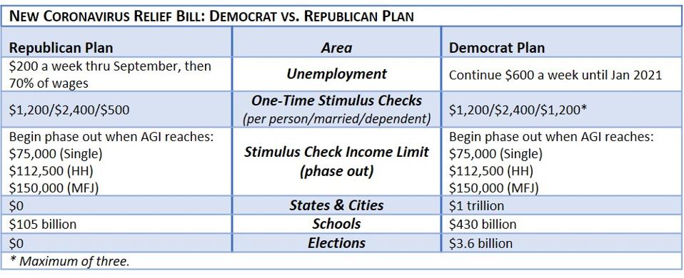 The New Coronavirus Stimulus Bill Comparing The Democrat And Republican Plan