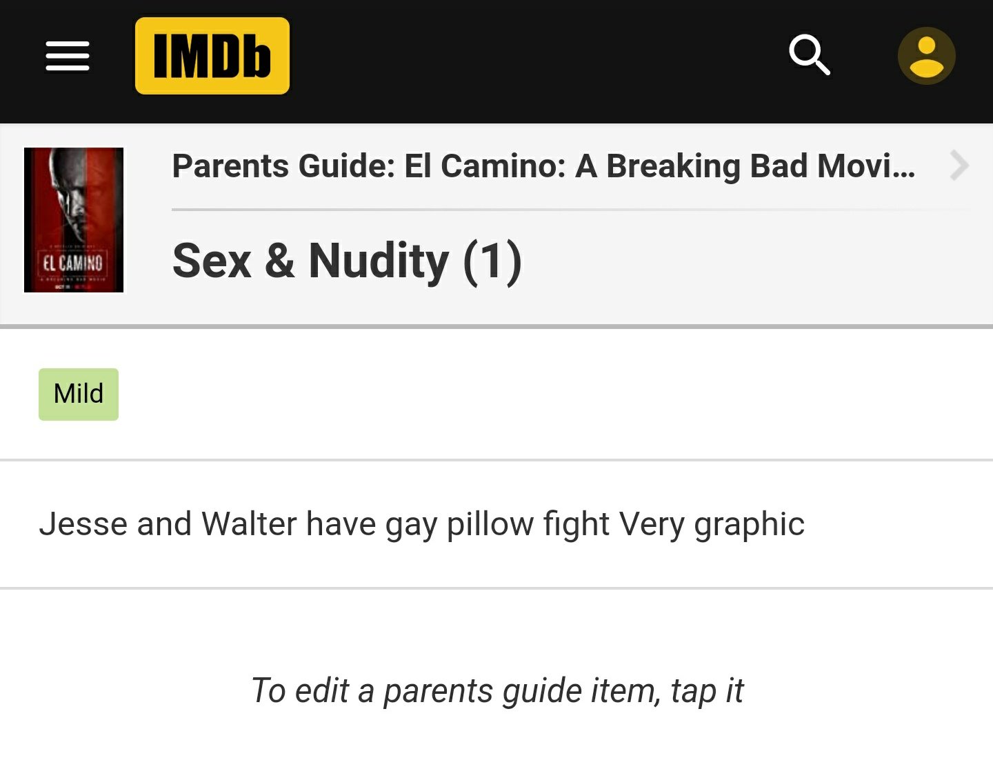 Craig On Twitter Having Now Viewed Elcaminoabreakingbadmovie I Can Clarify That This Imdb Parent S Guide Review Is Spot On Netflix Elcamino Breakingbad Breakingbad Https T Co Sgm7cs4enj